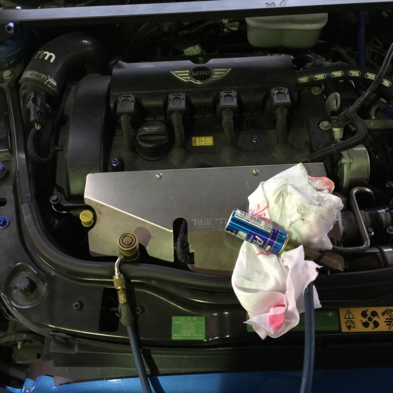 ミニのお客様にパワーエアコンプラスを入れてもらいました。トラブルがなくてもエアコンガスは自然に少しずつ抜けてしまいます。通常はエアコンガスを補充するんですが、パワーエアコンプラスならたった1本で1−2年分の抜けたガスの補充ができると同時にエアコンの性能も良くしてくれますよ!